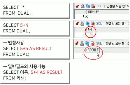 새로운 값을 직접 입력하는 경우 아래와 같이 DUAL 테이블을 사용함