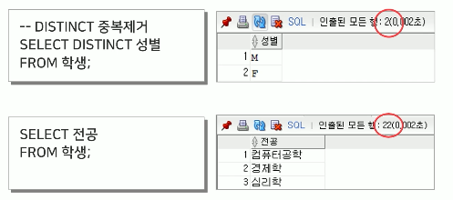 - DISTINCT 키워드는 첫 칼럼의 앞에 위치해야 함