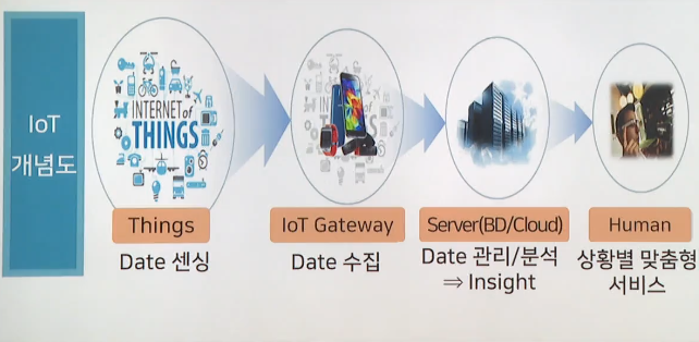 인터넷에 연결된 things에 센서와 통신기술을 부여해 스스로 정보를 수집하고 공유하면서 기계학습을 통한 지능형 네트워킹 기술을 활용하여 인간의 삶에 가치 있는 예측/맞춤형 서비스 제공