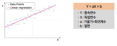 독립변수와 종속변수 간에 관련성 정도(강도)를 파악하기 위해 '선형 회귀방정식(1차 함수)'을 도출하여 회귀선을 추정