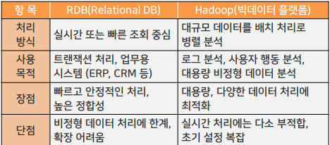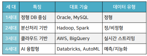 - 이기종 시스템의 데이터 통합이 필수 (ERP, CRM, IoT, SNS 등 다양한 소스)