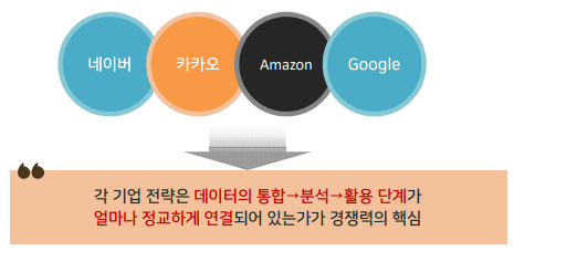 각 기업 전략은 데이터의 통합→분석→활용 단계가