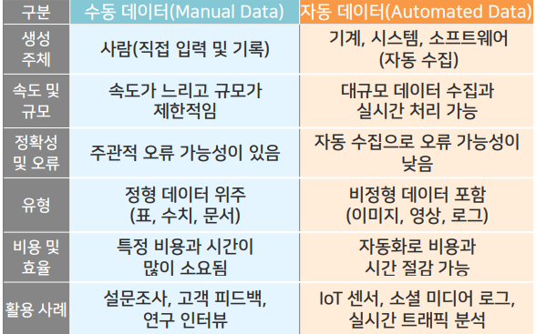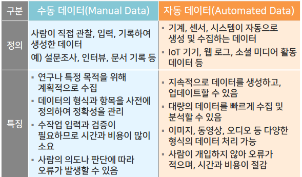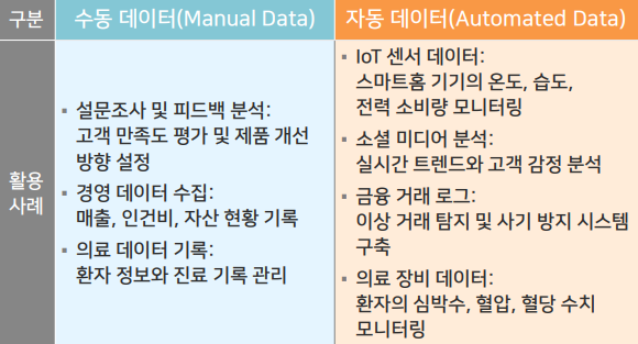 수동 데이터는 특정 목적에 맞춘 정밀 분석 관리가 필요한 경우에 적합.