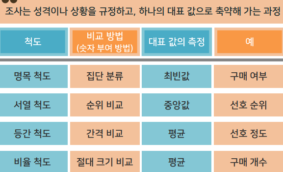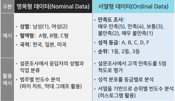 예) 고객 만족도 조사에서 점수(정량적 데이터)와