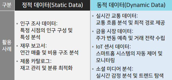 자동 데이터는 대규모 실시간 처리 및 예측 분석에 적합.