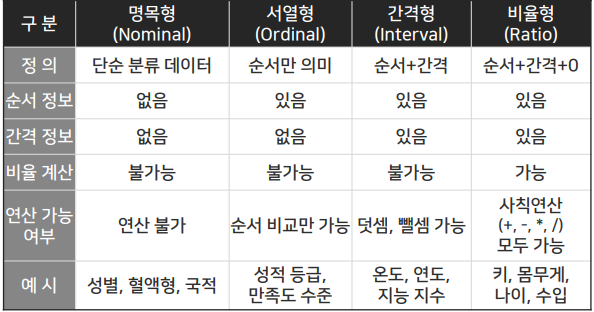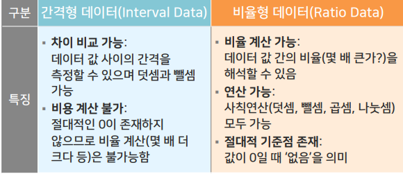 값 간의 순서, 간격, 비율을 모두 비교할 수 있음.