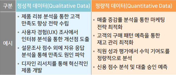 데이터의 유형에 맞는 분석 도구와 기법을 적절히 활용하면, 시사점 도출과 의사결정의 정확성을 높일 수 있음