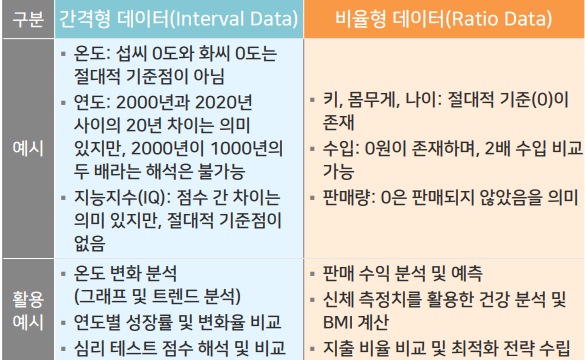 '절대적 0(Zero Point)'가 존재하는 데이터
