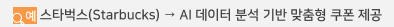 고객 구매 데이터를 분석하여 맞춤형 할인 쿠폰 제공. 로열티 프로그램(My Starbucks Rewards) 운영