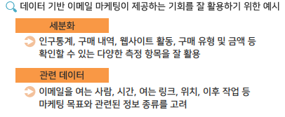 고객에게 뉴스레터, 할인 쿠폰, 맞춤형 추천 제품을 이메일로 발송.