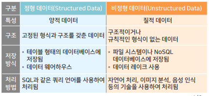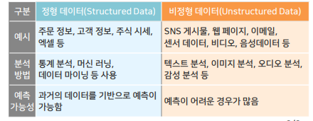 정형 데이터는 구성, 정리, 검색 및 분석이 쉬운 반면, 비정형 데이터는 분석이 어려움