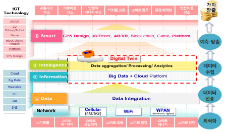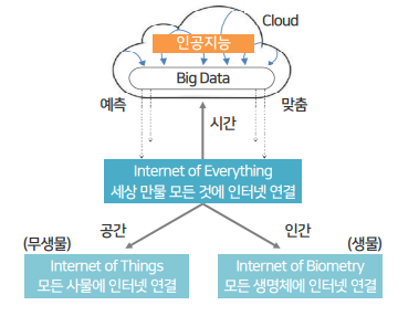 인터넷에 연결된 Things에 센서와 통신기술을 부여해 스스로 정보를 수집하고 공유하면서 기계학습을 통한 지능형 네트워킹 기술을 활용하여 인간의 삶에 가치 있는 예측/맞춤형 서비스 제공