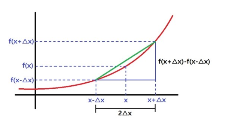result = (f(x + delta_x) - f(x - delta_x)) / (2 * delta_x)