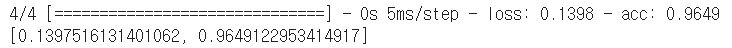 # loss, acc는 학습 데이터를 가지고 한거라 중요하지 않음!