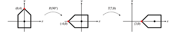 (7,0) 이동과 90° 회전이라는 구체적인 상황을 예로 들면 다음과 같다.