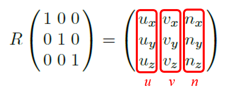 R⎝⎜⎛100⎠⎟⎞=⎝⎜⎛uxuyuz⎠⎟⎞,R⎝⎜⎛010⎠⎟⎞=⎝⎜⎛vxvyvz⎠⎟⎞,R⎝⎜⎛001⎠⎟⎞=⎝⎜⎛nxnynz⎠⎟⎞