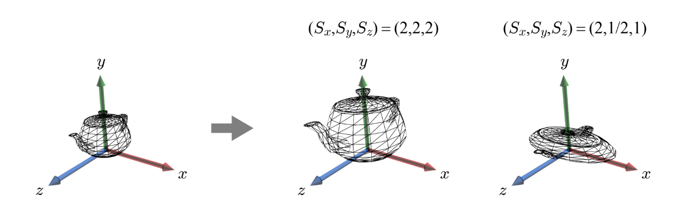 물체의 Scaling은 다음과 같이 정사각 대각 행렬로 나타낸다: