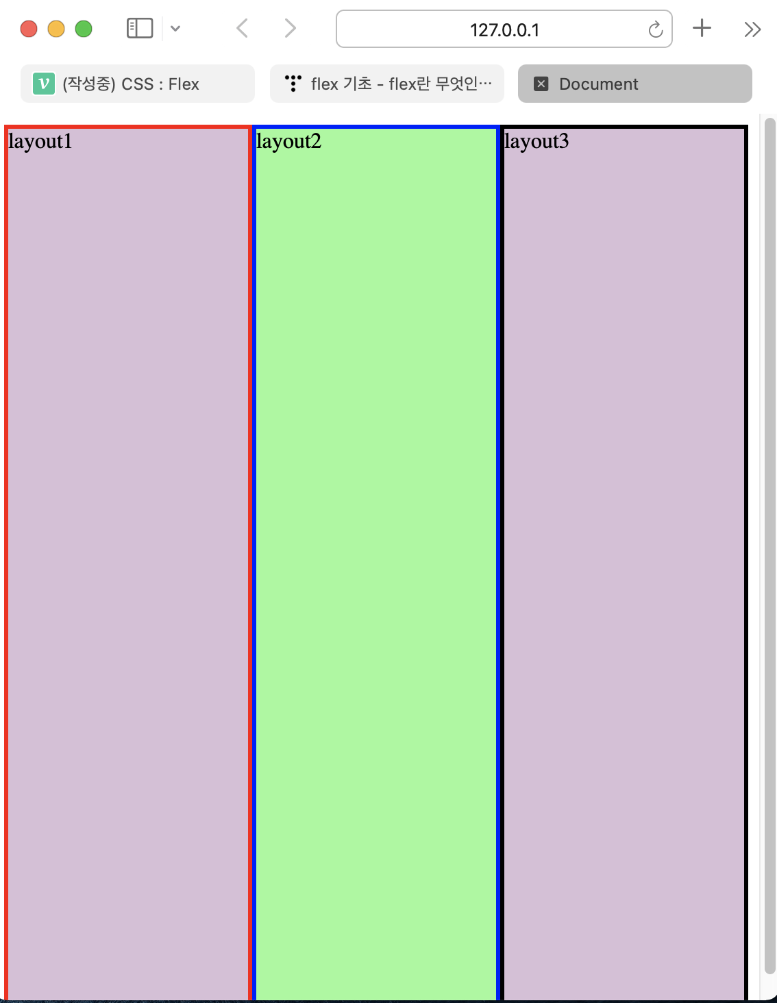 하나에게 flex : 1 을 주는 경우 그 flex값을 준곳이 늘어난다고 생각하면 된다.