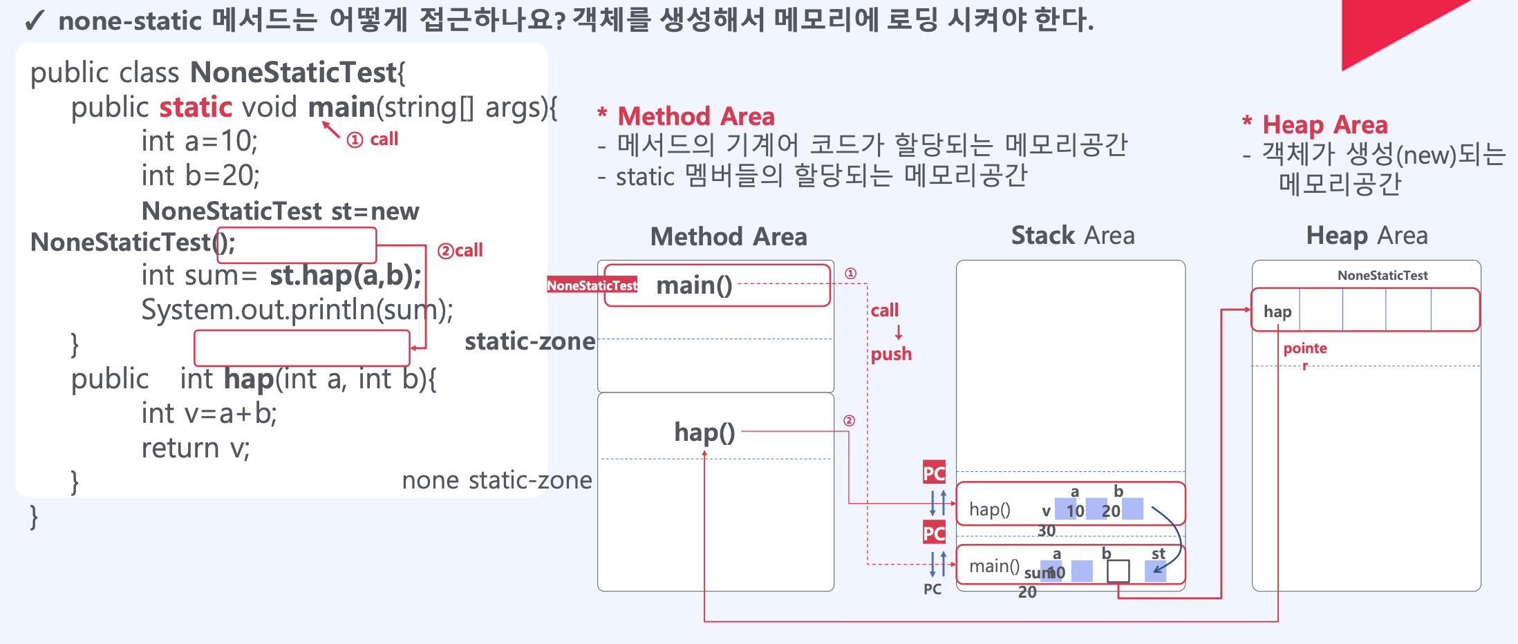 - none-static 멤버에 접근하기 위해선 객체를 생성해야한다.