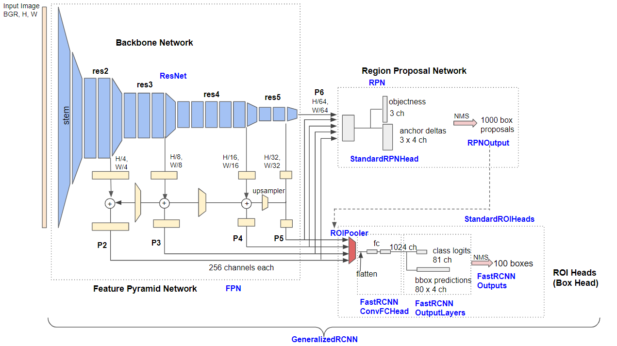 우리 프로젝트의 경우 Pytorch에서 제공하는 Resnet FPN 기반 Faster-RCNN을 사용하기 때문에 밑의 그림과 같은 구조의 모델을 사용한다.