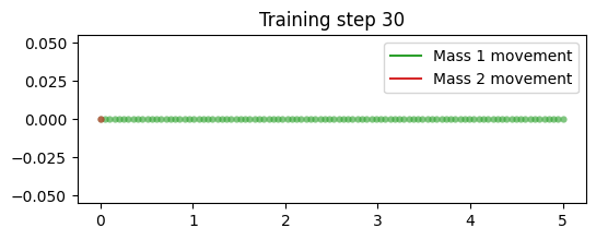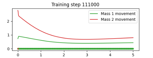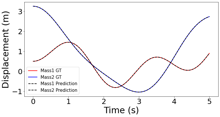 그래서 Base model을 학습 시킬 때 일계도함수, 이계도함수 모두 autograd.grad를 이용하여 구하였는데 이 과정에서 문제가 생긴 것이라고 생각했다. 그 이유로 본 과제는 t라는 하나의 input으로 displacement_m1, displacement_m2라는 두개의 output을 추론해야하는데 이 때 많은 문제가 발생했다. (특히 이계도함수를 구할 때)