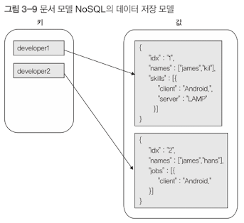 문서 모델 NoSQL 저장소는 키-값 모델을 개념적으로 확장한 구조다. 하나의 키에 하나의 구조화된 문서를 저장하고 조회한다.