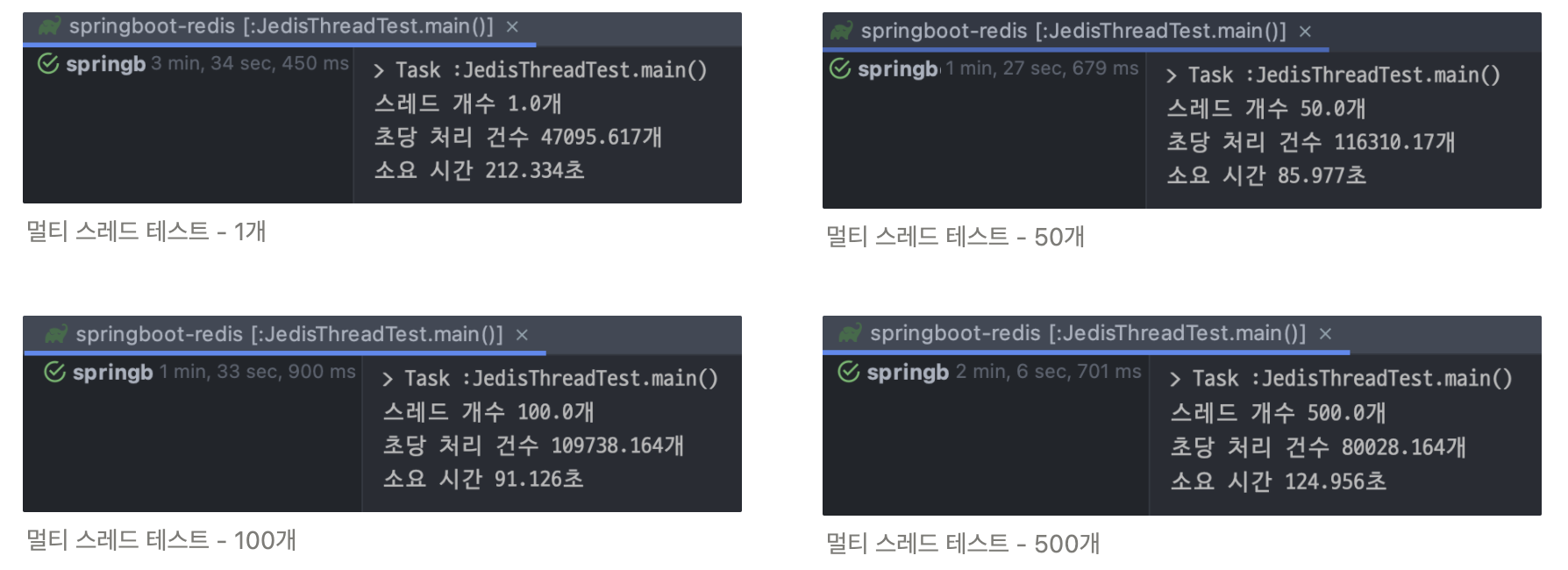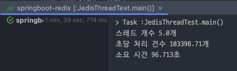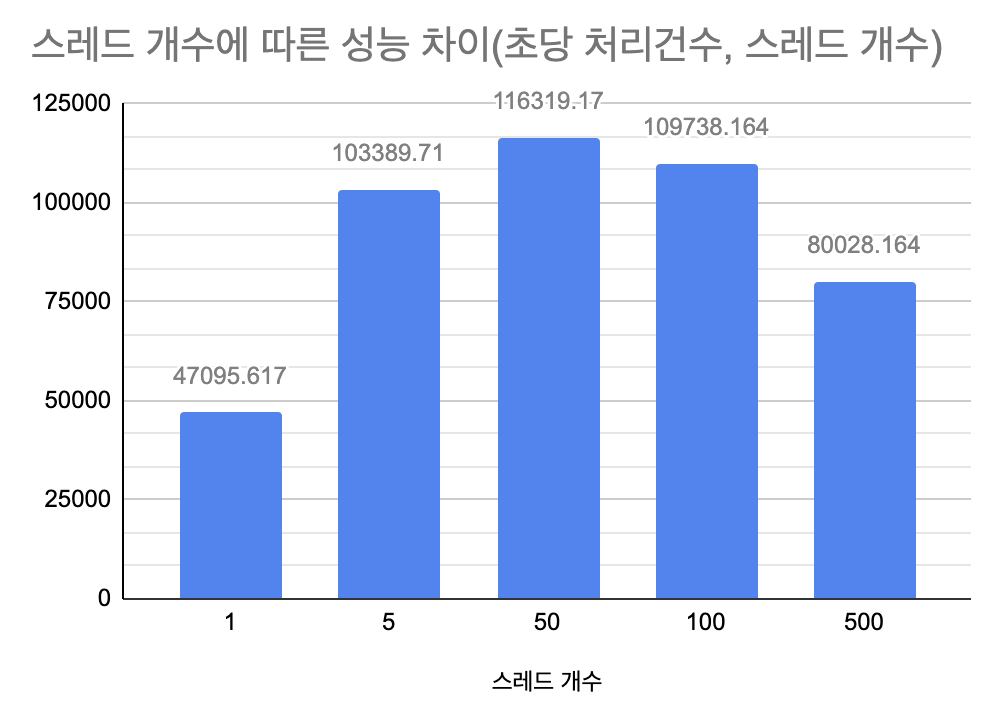 | 스레드 개수 | 초당 처리 건수 | 소요 시간 |