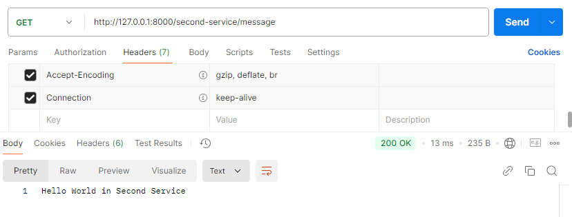 return "Hello World in Second Service";