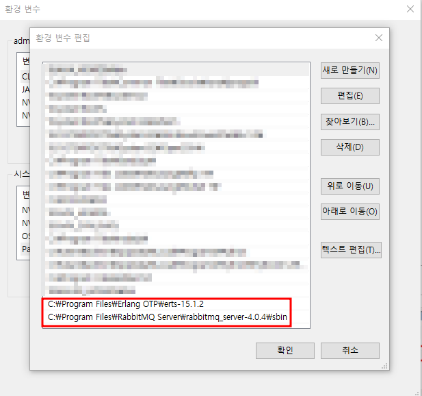 👆 Erlang과 RabbitMQ 모두 환경변수 등록 필요