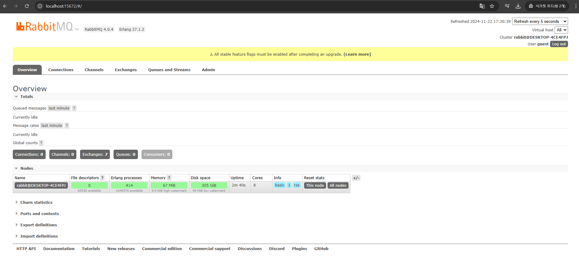 👆 설치가 완료되어 RabbitMQ가 실행중임을 확인 가능