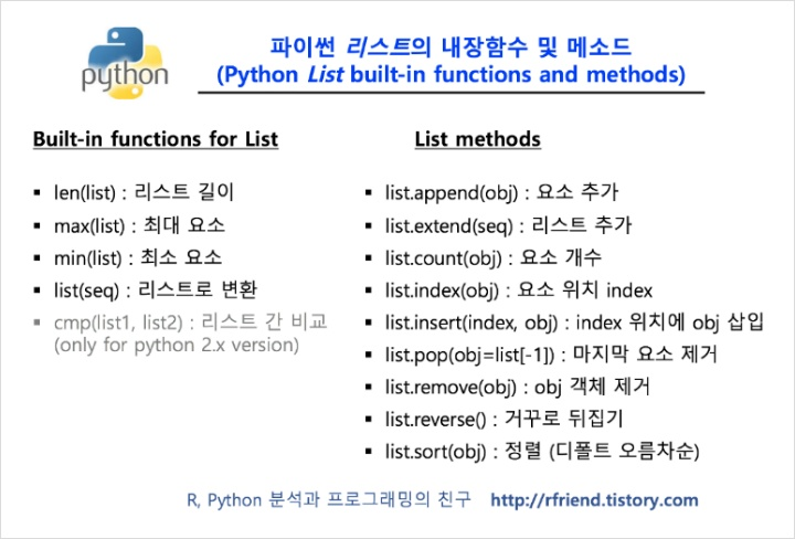 | L.appned(x) | 리스트 마지막에 항목 x를 추가 |