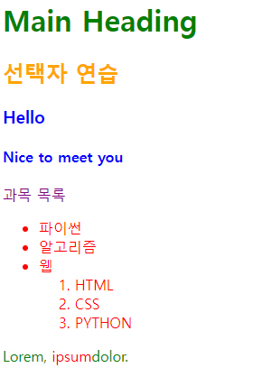 - HTML 요소를 선택하여 스타일을 적용할 수 있도록 하는 선택자
