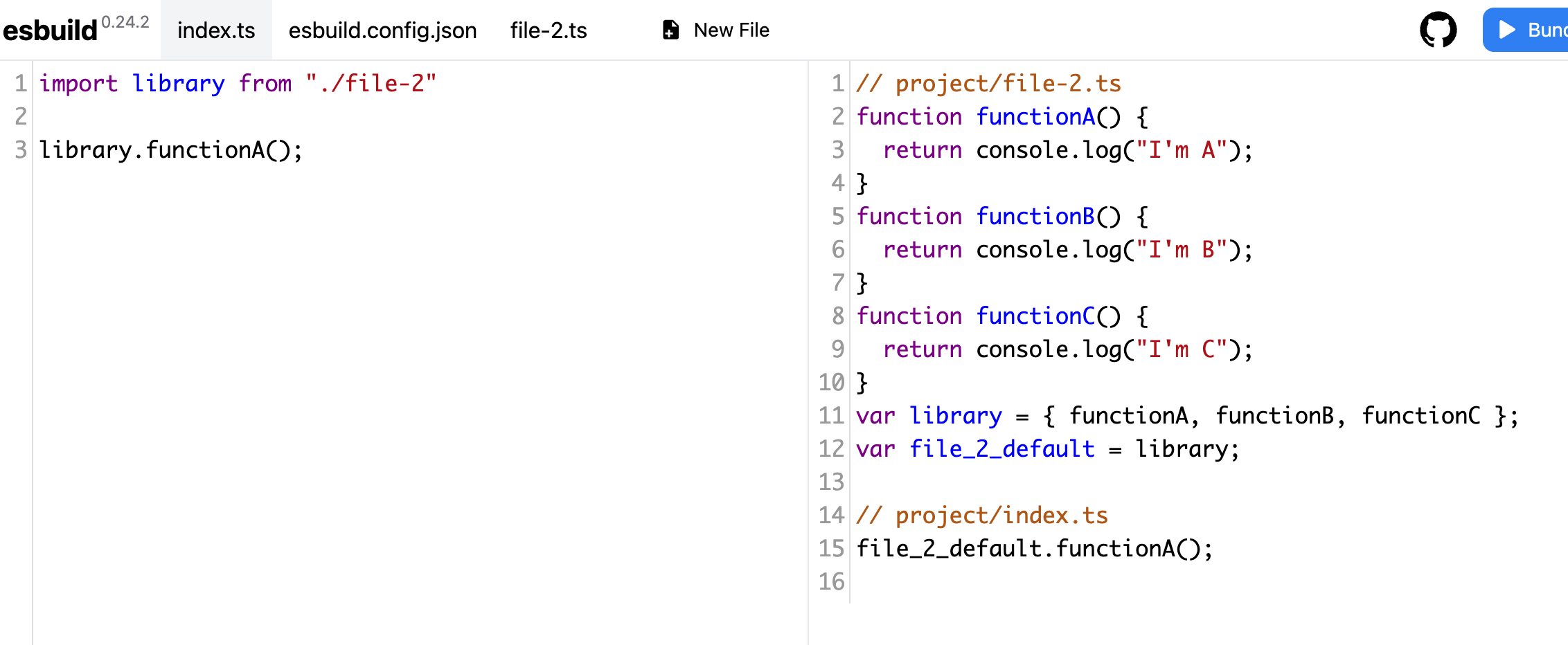 esbuild 번들링 툴로 번들링을 한다면, 아래와 같은 결과를 얻을 수 있습니다.