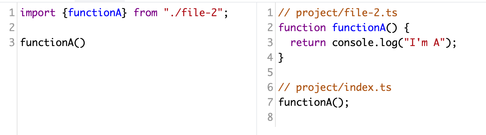 위와 같은 경우에 tree shaking을 지원하는 번들러는 funtionA 모듈만 번들링하여 프로덕트에 포함되는 번들의 크기를 줄이고, 안정성을 높이게됩니다.