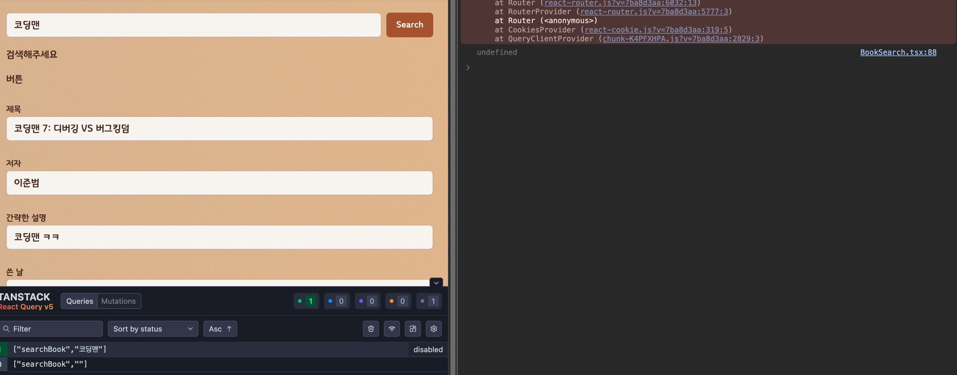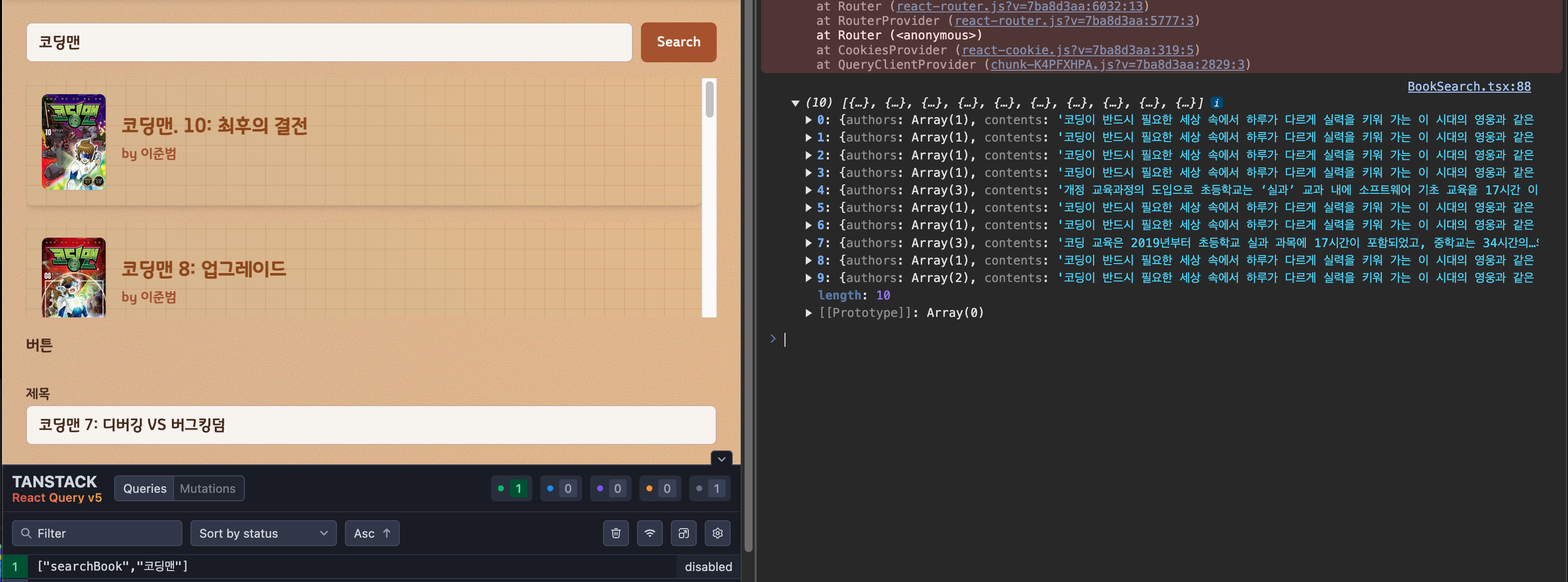 한번의 검색으로, query의 enabled를 true로 바꿔줌으로써 fetching을 진행하고 activate 해준다.