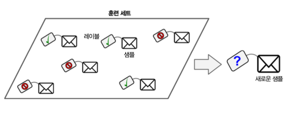 문자를 스팸으로 구분하는 것을 예시로 들 수 있다. 여러 가지 메일과 발송 기관 등을 샘플로 훈련하여 스팸메일인지 아닌지를 분류할 수 있도록 훈련되어야 한다.