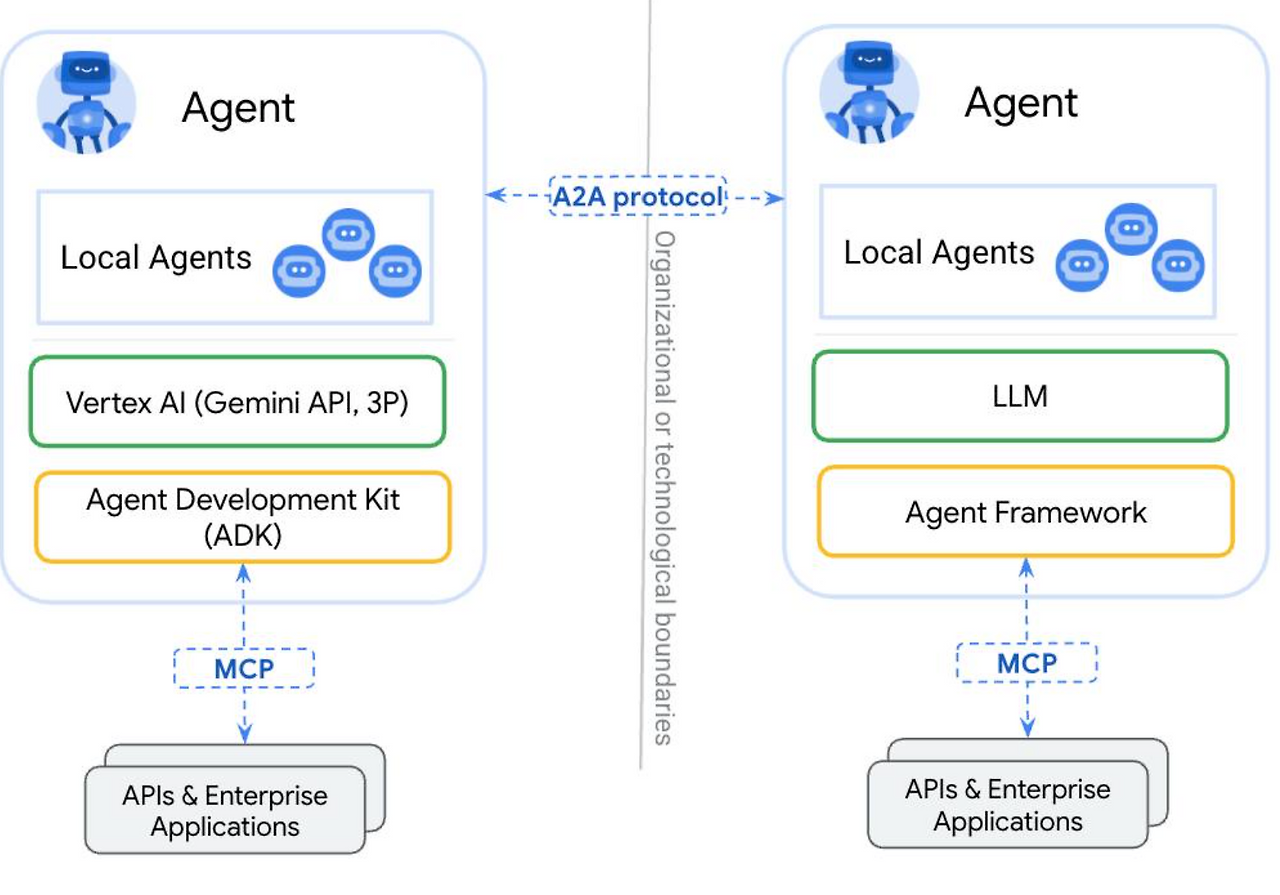 - 서로 다른 프레임워크, 벤더, 시스템에서 만들어졌더라도 에이전트들끼리 자유롭게 정보교환과 작업 협업 가능