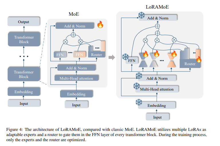 따라서 이 논문에서는 LoRAMoE라는 프레임워크 제안