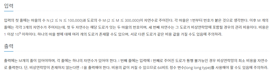 // 간선의 비용에 따라 정렬을 먼저 해야한다. <= 크루스칼 알고리즘 전제 조건