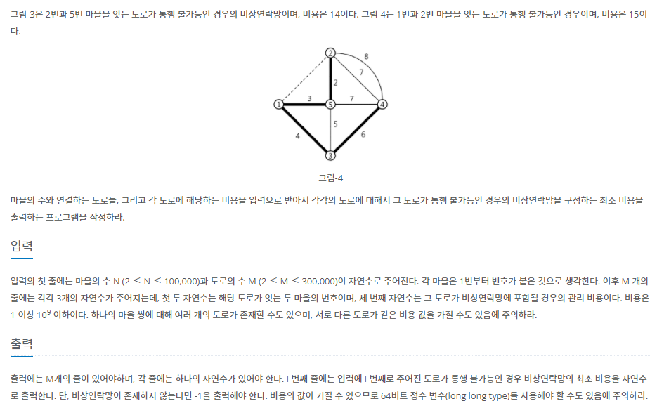 // 자연스럽게 가장 비용이 높은 간선(신장트리에 포함될)을 제외하게 된다.