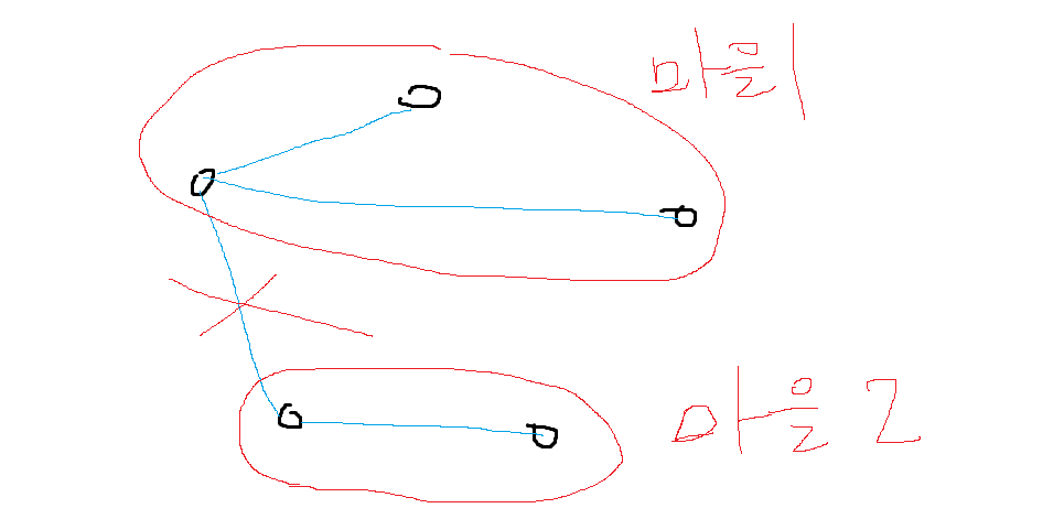 (2) 마을을 두 개로 분리한다. 분리된 마을에는 집이 하나 이상 있어야 한다.