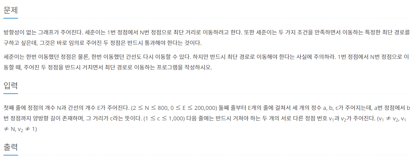 백준 특정한 최단 경로: https://www.acmicpc.net/problem/1504