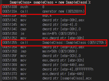// new (nothrow) SampleClass(); / delete sampleClass;