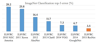 Deep learning을 활용하면서부터 Error율이 급감하였고, 이후에는 인간보다 객체를 더 잘 구별해내는 수준에까지 이르게 되었다.