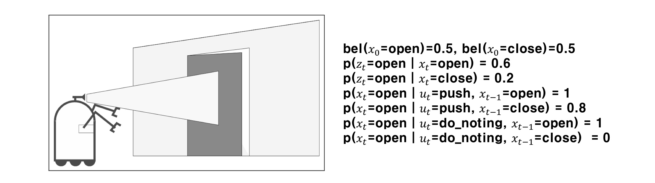아래 예제에서의 Bayes Fileter에서의 목표는 문의 개폐여부이다.