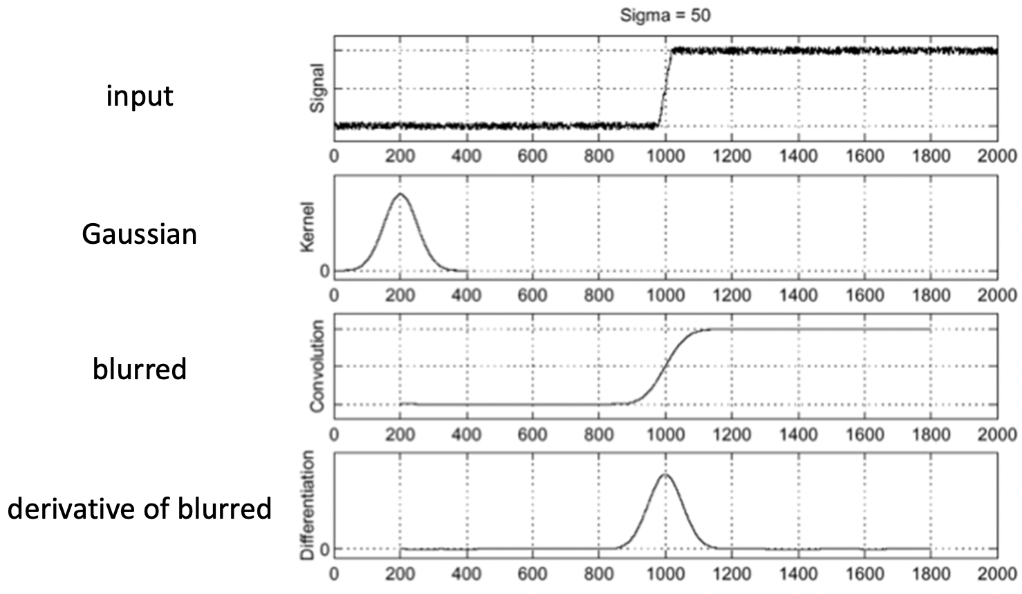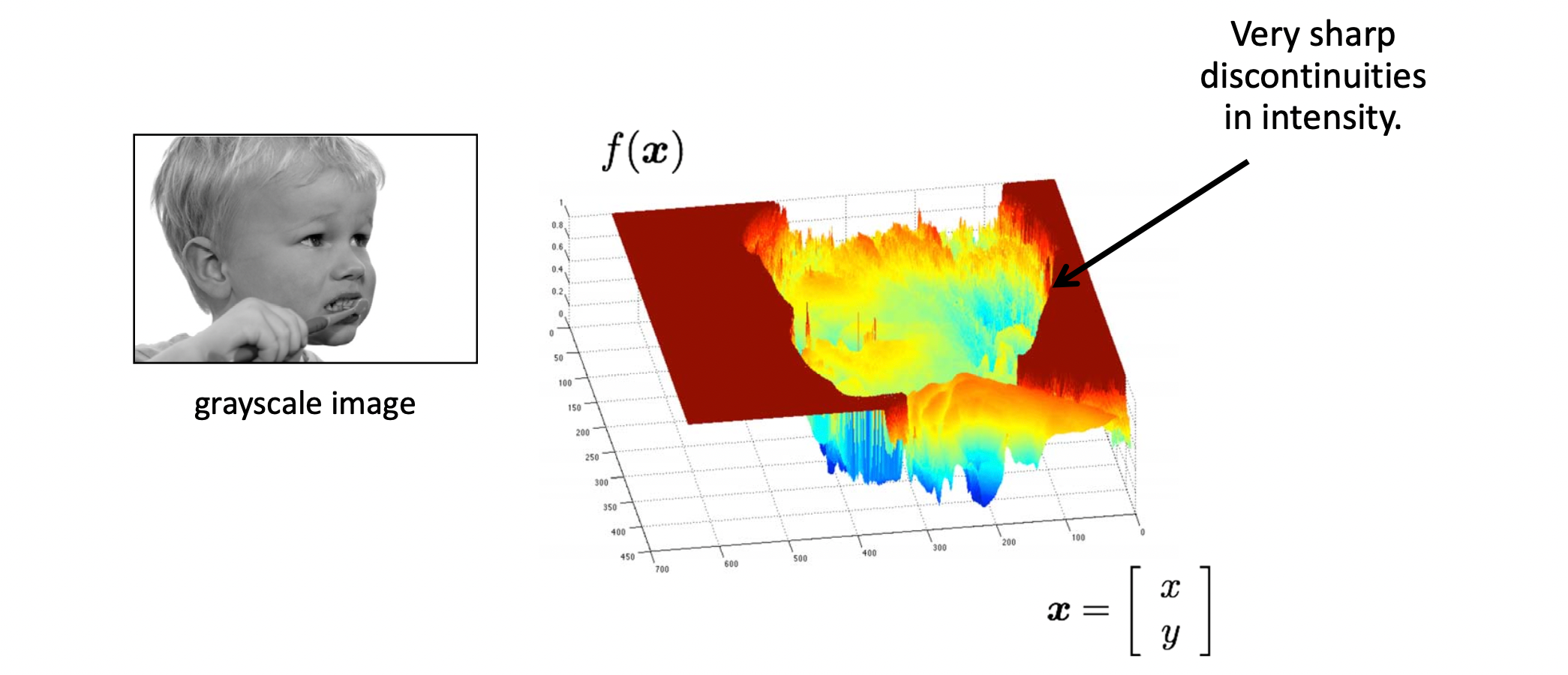 위의 Figure에서 보자면, Edge 부분은 Discontinuity하다. 즉, 값이 불연속적인 부분이라는 것이다. 값이 불연속적인 지점을 활용하기 위하여 미분을 활용한다.