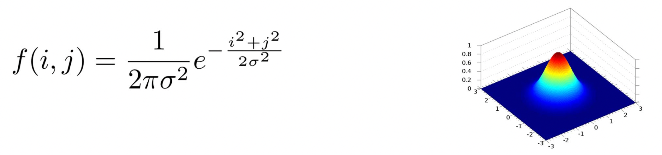 이러한 특징을 활용해서 주변과 linear combination을 하되 center 픽셀, 즉 원본 위치의 기존 픽셀 값을 가장 크게 반영할 수 있도록 Filter를 설계한다. 이론적으로, 가우시안 함수는 아무리 무한대로 멀어지도 값이 0 이상이지만, 실제로는 크기에 대한 한계가 존재하기 때문에 다음과 같이 사용한다.