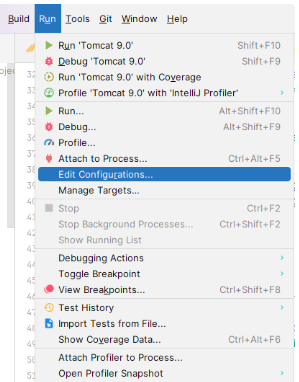 3. 상단 MENU TAB 에서 Run -> Edit (run/debug) configurations 클릭
