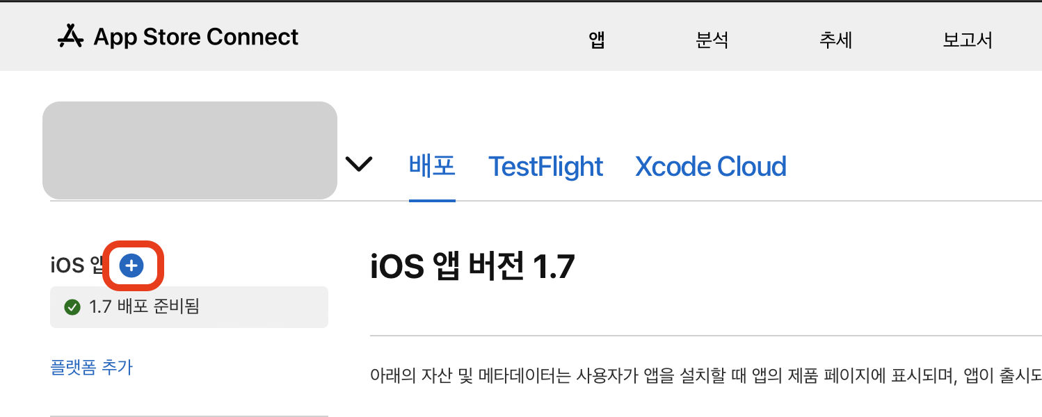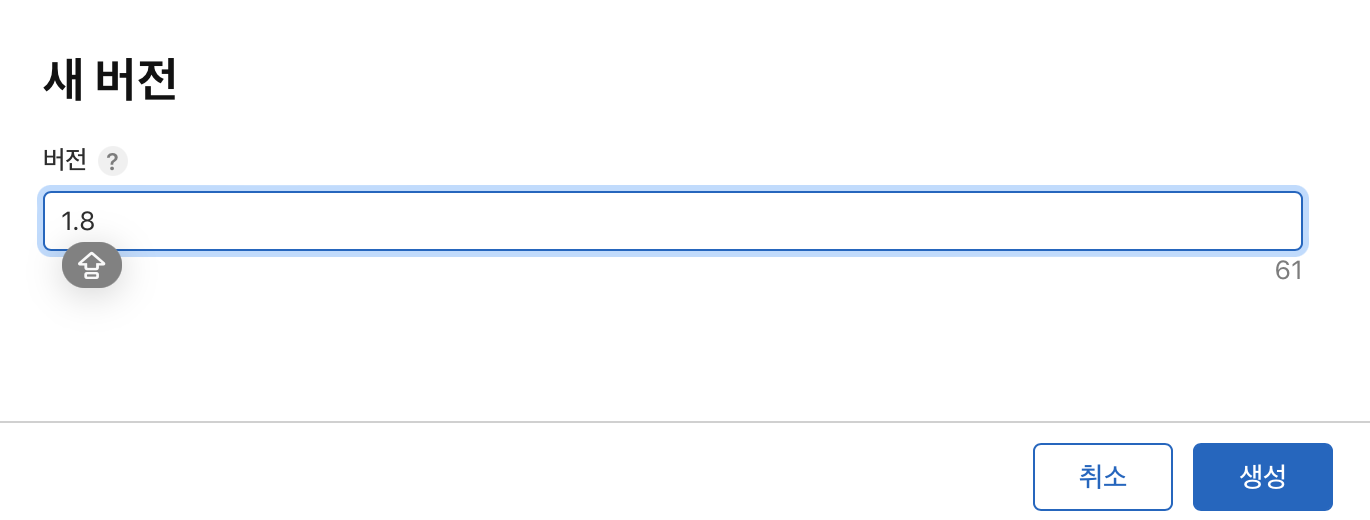 파란색 "+" 버튼 클릭해서 새 버전 추가