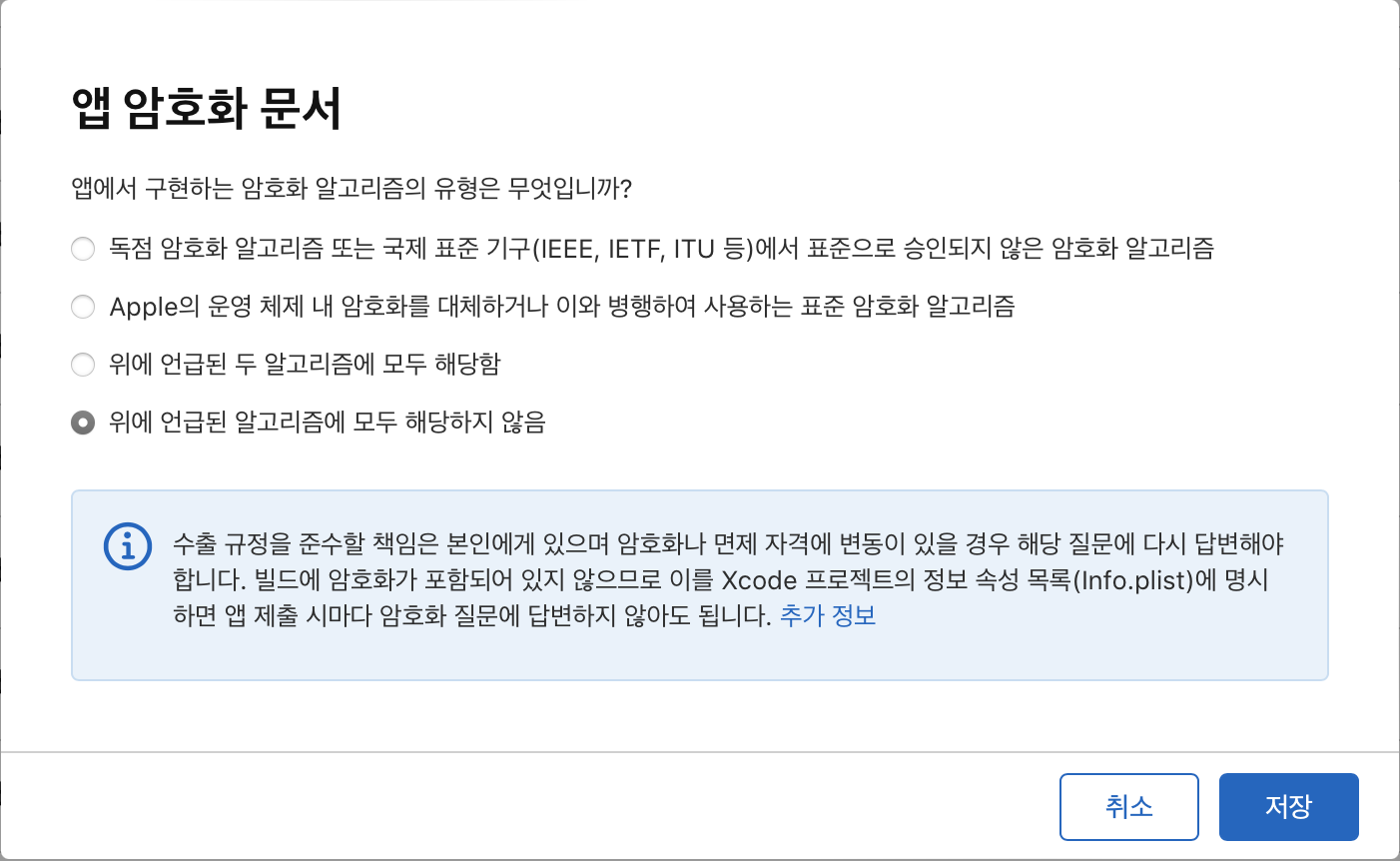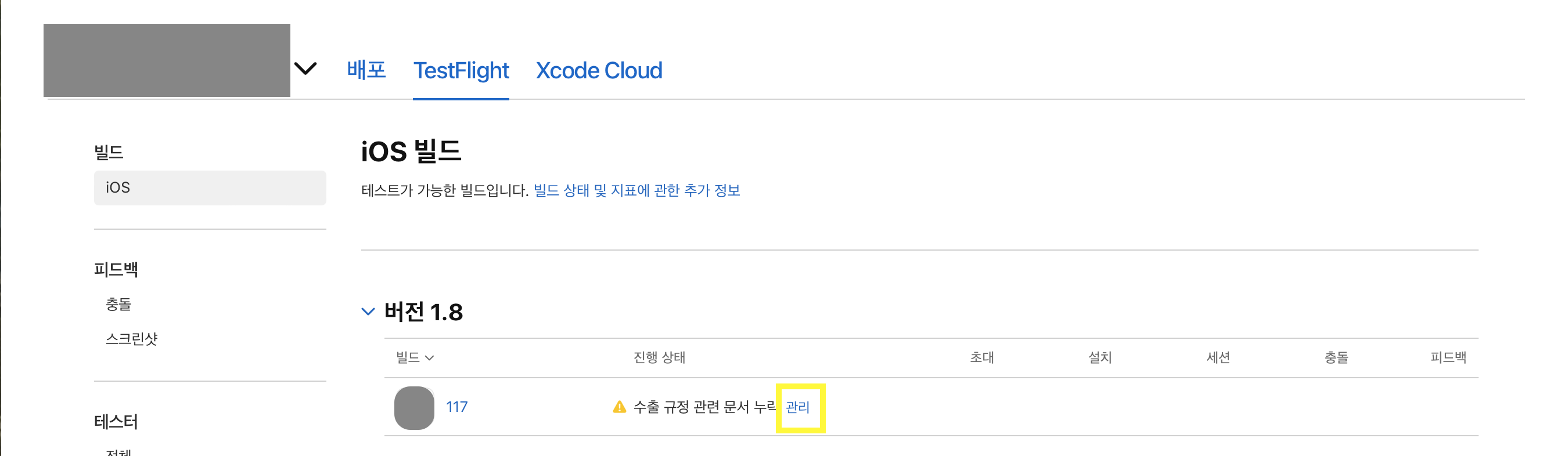 만약 빌드가 "Missing Compliance / 수출 규정 관련 문서 누락" 상태로 표시된다면, 수출 규정 관련 문서 제출이 필요함.